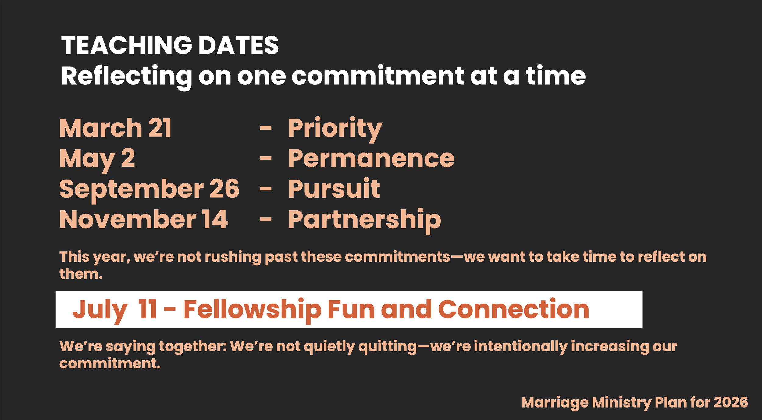 Marriage MinistryInvesting in Relationships for the Glory of God March 21st, 2026PRIORITYIncreasing Our Commitment Download PDF of Notes Mark Your Calendar!